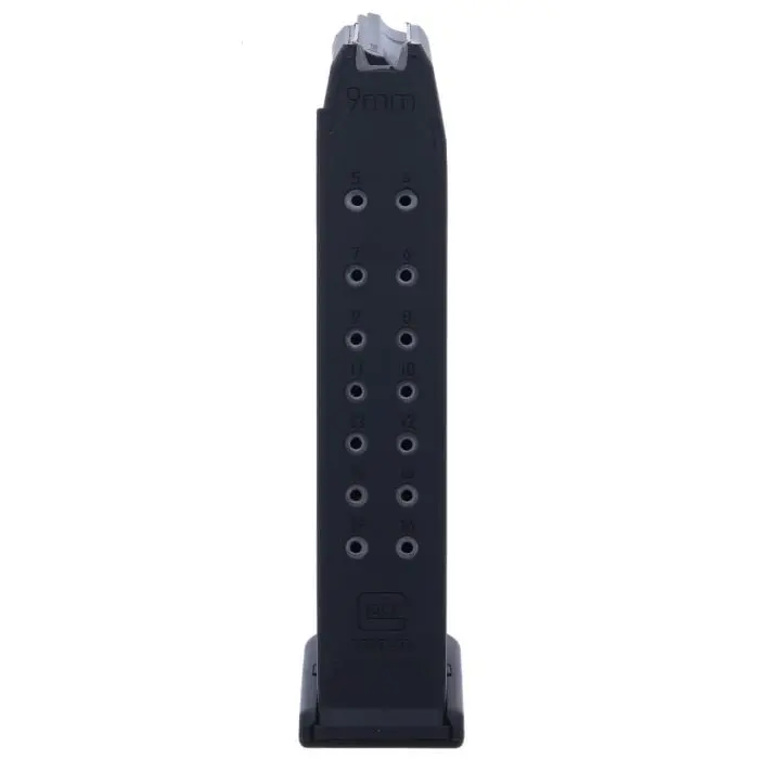 מחסנית מקורית של Glock בקיבולת 17 כדורים ל־9mm. מיוצרת מפלדה מחוזקת עם בסיס פולימרי מקורי להבטחת פעולה חלקה והזנה מדויקת. מיועדת לשימוש יומיומי, אימונים ותחרויות.